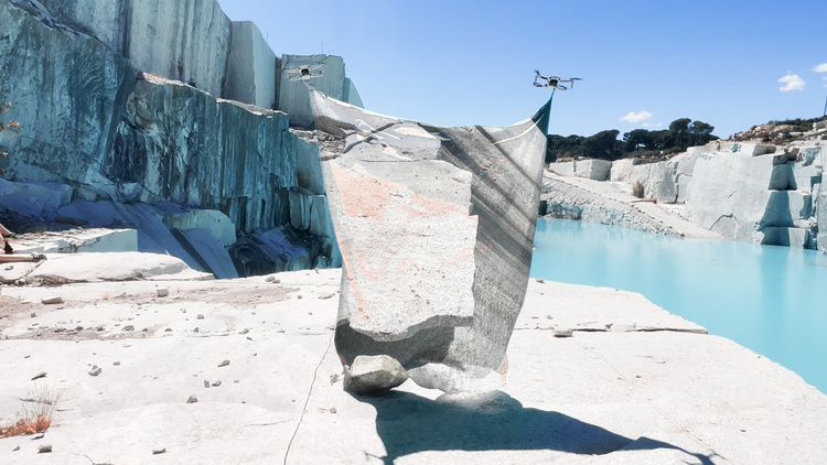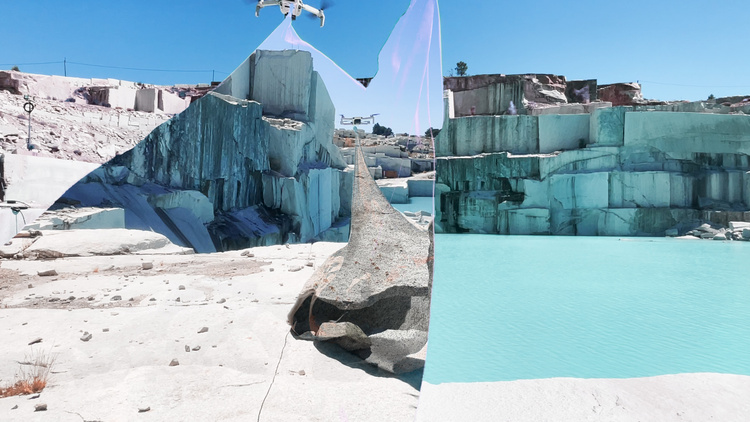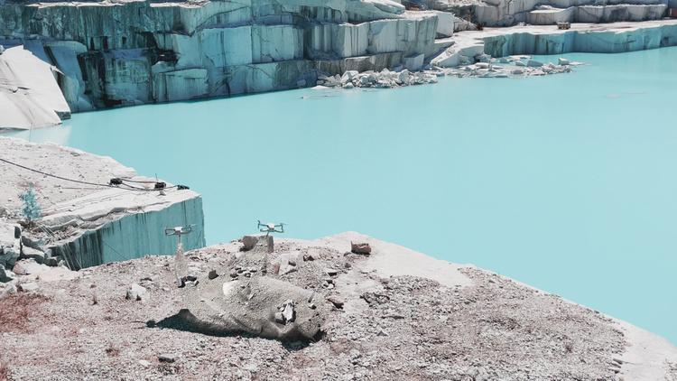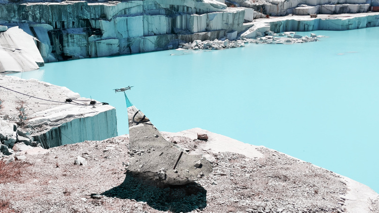 “Rarearth” deals with the complexities that exist between the excess of digitality and geology. Two dazed characters who wander around lost in a quarry of toxic mud. They are hanging some parallel stories, as a caress on the black mirror of our devices that transforms into a scratch on thecracked territory.